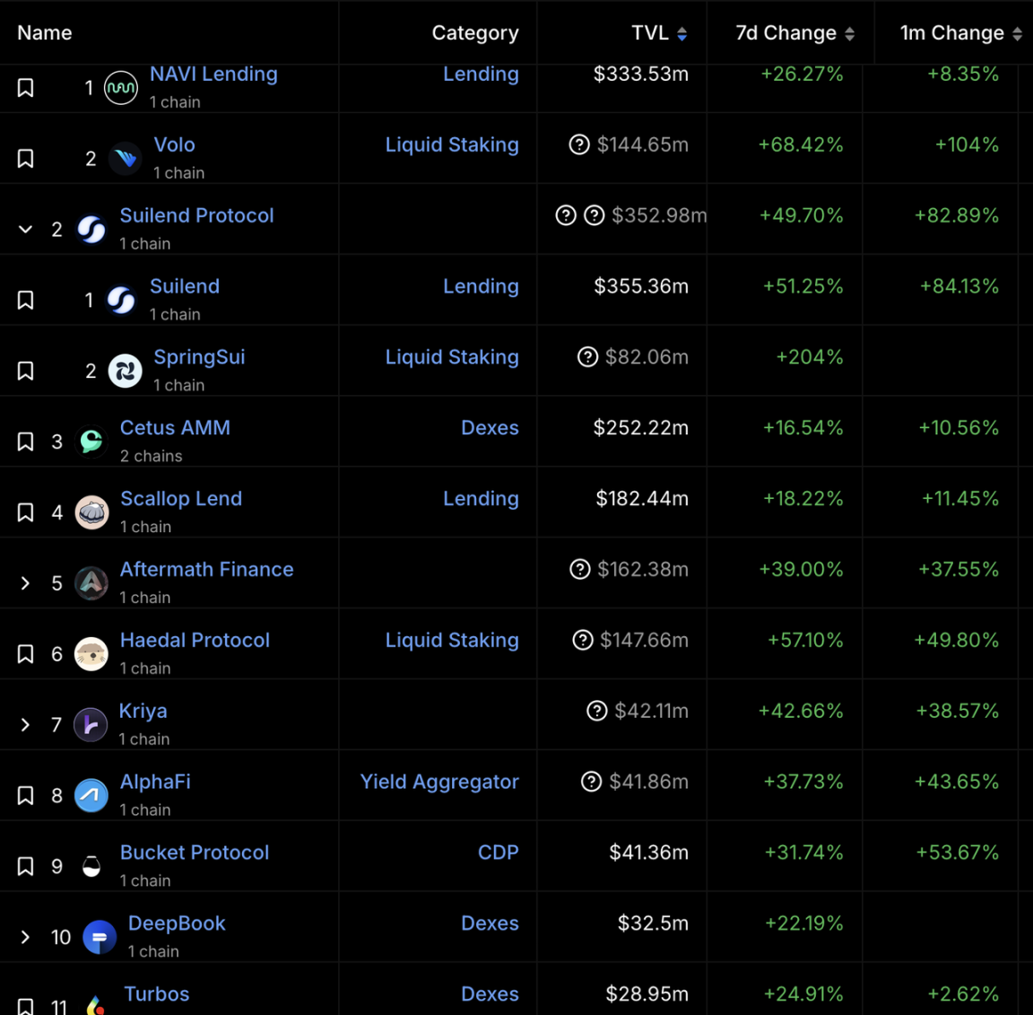 Sui 生态项目,图源:DefiLlama