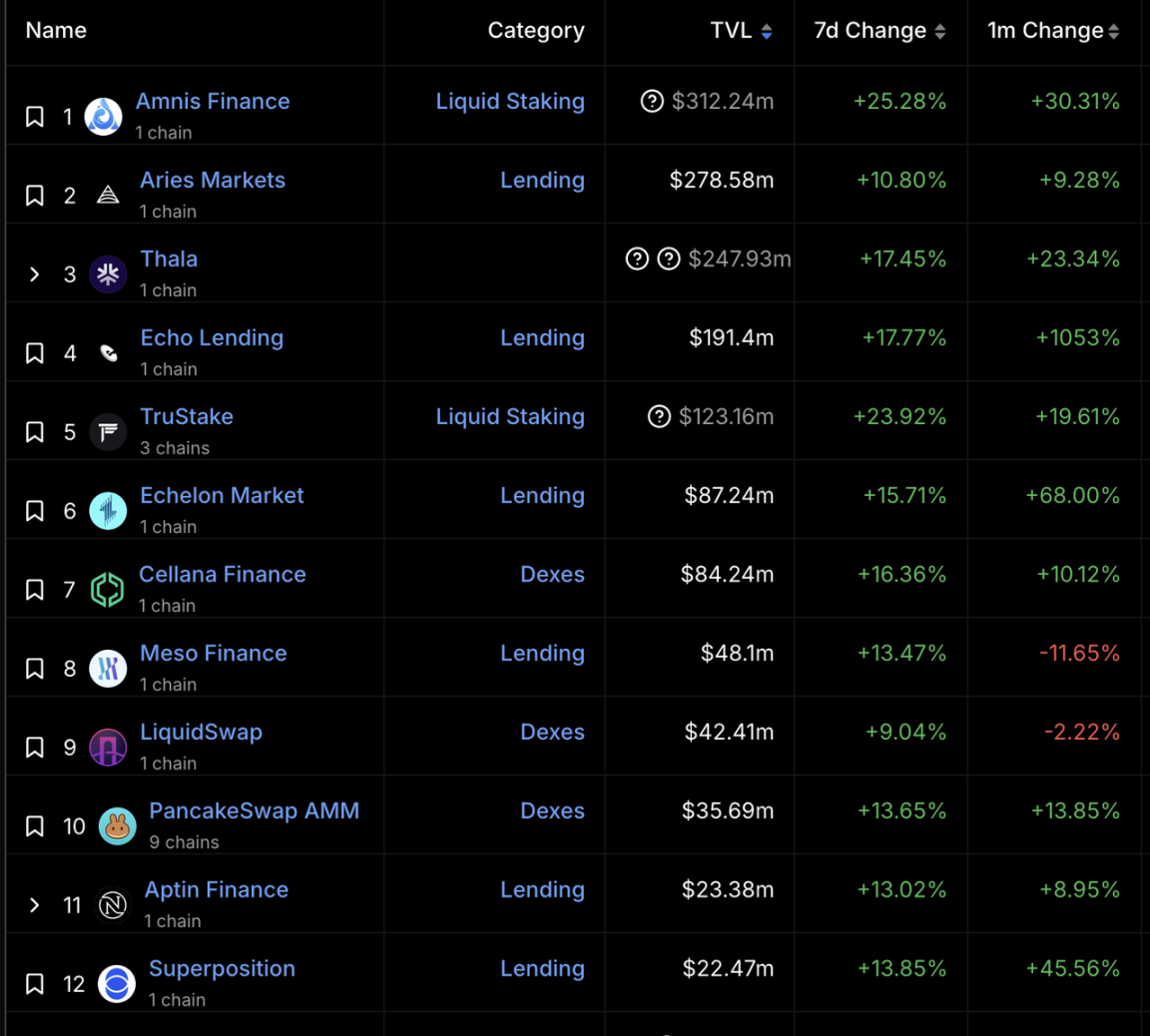 Aptos 生态项目,图源:DefiLlama