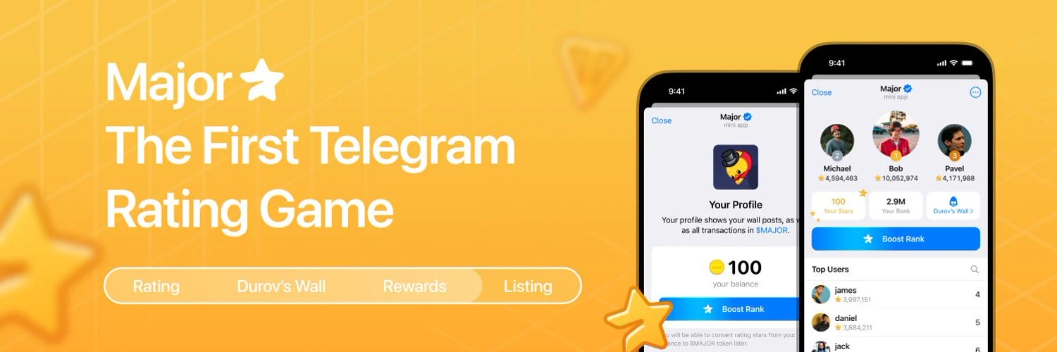 最新动态:Major 拟本月在 The Open Network(TON)上推出代币,代币供应量为 1 亿枚,用户需要完成相关任务并获得成绩,所有 Farming 方法拟于 11 月 20 日停止。另据该项目 TG 频道此前相关公告,MAJOR 代币拟于 UTC 时间 11 月 28 日 12 点推出并将在 OKX 等交易所上线。此外,虽然 Major 没有明确提到空投时间,但很可能会在代币发行后进行。