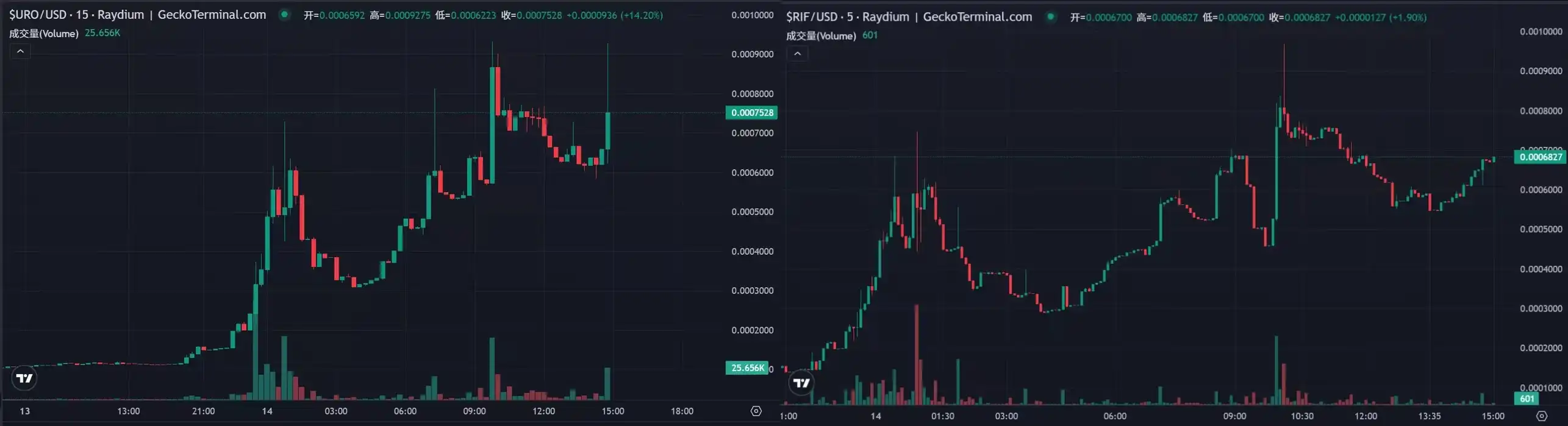 Pump.science 是 Desci 项目 Molecule DAO 推出的 meme 发币平台,用 meme 币的方式支持医学实验,代币 RIF 和 URO 上线并没有产生太多水花,市值一直在 15 万美元左右徘徊震荡。而这两日,RIF 和 URO 不断突破新高,市值最高接近 300 万美元,涨幅达 20 倍。