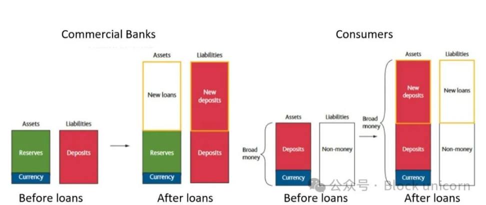 假设你需要融资来购买一辆新车。你向当地银行申请贷款,一旦获得批准,银行将向你的账户存入与贷款金额相匹配的存款。此时系统中便创造出了新的货币。