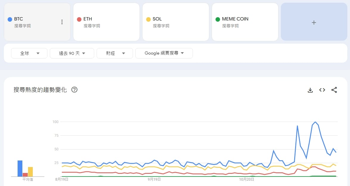 根据 Google 趋势 数据 ,Solana 的搜索量在过去数月持续攀升,尤其是在 Meme 币热潮的推动下,作为交易所和用户间的热门话题,SOL 的搜寻指数稳步上涨。相比之下,以太坊的搜寻热度增幅有限。
