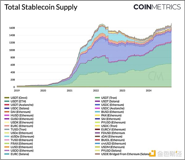 随着加密货币市场进入牛市,稳定币也恢复上涨势头,总发行量超过 1890 亿美元。这种涌入表明,流动性环境正在不断增长,因为用户可以利用价格上涨和链上生态系统中出现的机会获利。加密货币领域的并购活动升温,Stripe 于 10 月份以 11 亿美元收购了稳定币支付平台 Bridge,Coinbase 收购了 Utopia Labs ,进一步推动了该行业的增长势头。稳定币继续成为整个金融领域的中心主题,有望成为金融科技、支付和全球金融体系的支柱。