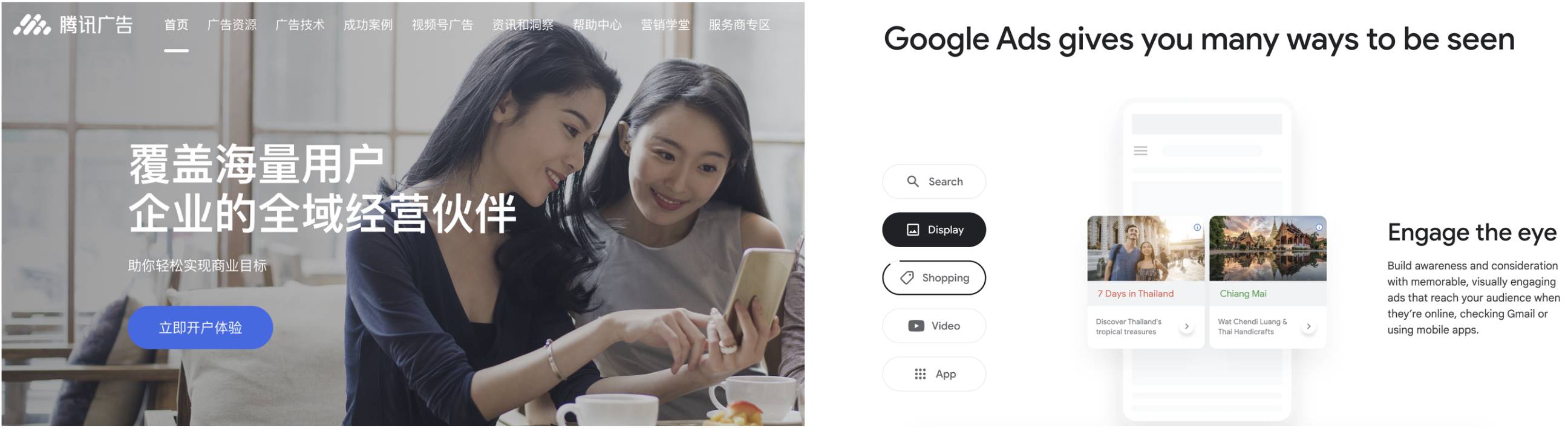 Google Ads 和腾讯广点通都是基于用户数据和行为进行精准广告投放的广告平台。