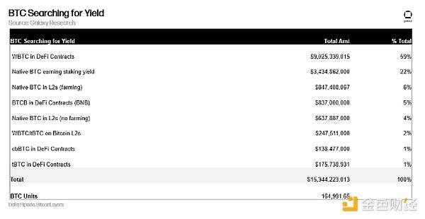 另请注意,我们的预测取决于比特币的 DeFi 和 L2 上的质押生态系统的进展,同时在未来 6 年内建立合法性。至关重要的是,如果新的比特币 L2 的 DeFi 收益率不够有吸引力,以太坊上打包的 BTC 供应可能会留在以太坊生态系统中。以下部分将重点介绍比特币 L2 上的 DeFi 应用程序与接受以太坊上接受 BTC 打包版本的 DeFi 应用程序竞争所需的最低收益率水平。