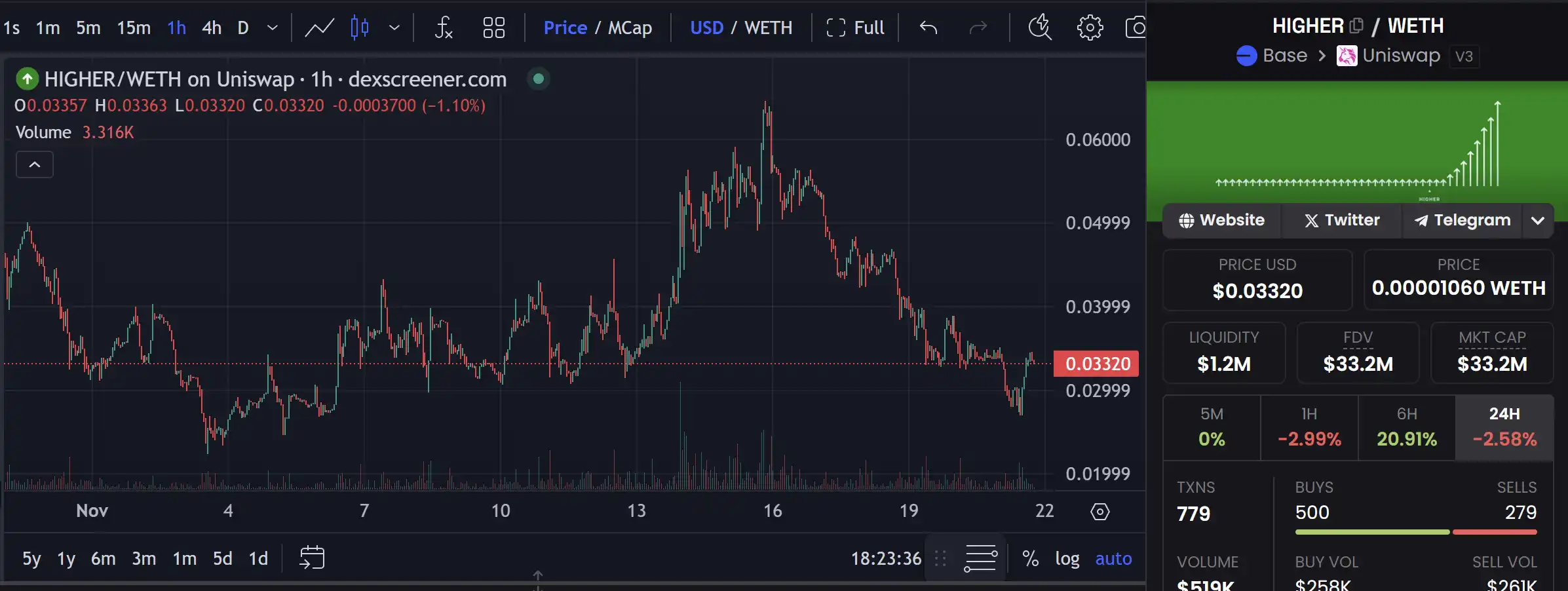 LUM 的创建固然是好事,凸显了 AI 与用户之间的协作互动。但是很离谱的是 LUM 的发行相当于是给自家的社区代币 HIGHER 敲骨吸髓。HIGHER 直接成为了「LOWER」。