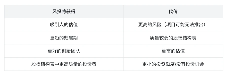 大多数加密风投的管理资产规模不到 5000 万美元,因此他们倾向于投资于尚未推出产品且估值较低的项目。为了确保风投与其他利益相关者的长期利益一致,通过私人市场获得的代币通常会设定锁定期和归属条款。