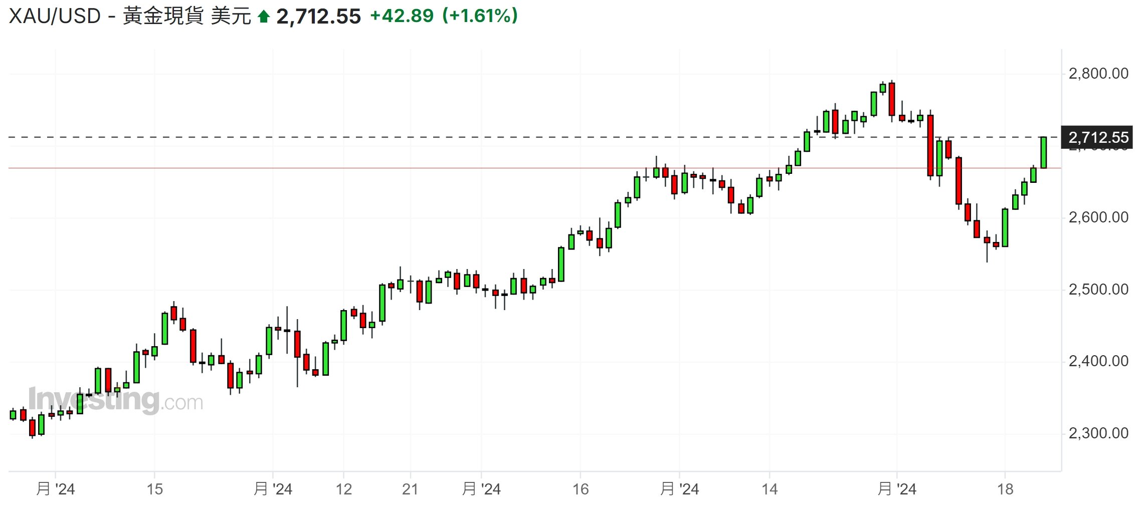 自 川普胜选以来,美元强劲升值,在选前不断走高的金价反而𫔭始疲软,在 11 月中更跌至 2 个月新低水準 2,536 美元,不过近日俄乌紧张情势加剧,在避险𧹒盘下,金价急涨, 现货黄金 价格周五收在 2712 美元,写下 11 月初以来新高。