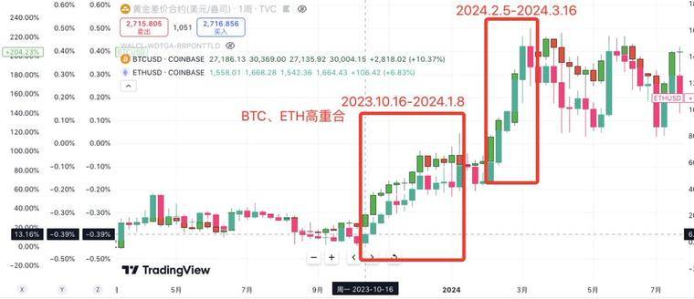 宏观大背景:经历2022年加息周期以来,2023年9月暂停加息,加上BTC现货ETF的炒作和通过并交易。