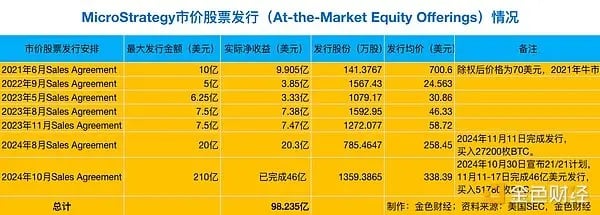 根据 2024 年 11 月 11 日 MicroStrategy 提供给美国 SEC 的 8-K 档案,MicroStrategy 一共新发行了 785.4647 万股股份,共获得 20.3 亿美元,全部𧹒入 27200 枚比特币。