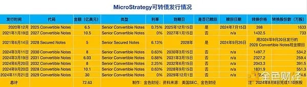 不同的是,MicroStrategy 可转债到期日很长,最近的到期日是在 2027 年,足以捱到新一轮周期。如果有需要,MicroStrategy 完全可以把强制赎回可转债,让投资者把可转债转为为几乎 0 成本的 MicroStrategy 新发行股票,并不用 MicroStrategy 真的去还钱。即便是一直到到期日再赎回,MicroStrategy 也可以发行新的可转债置换旧的可转债,就如 MicroStrategy 用 2024 年 9 月 20 日发行的 2028 Convertible Notes 现金赎回了 2028 Secured Notes。显然,MicroStrategy 的可转债更稳健。