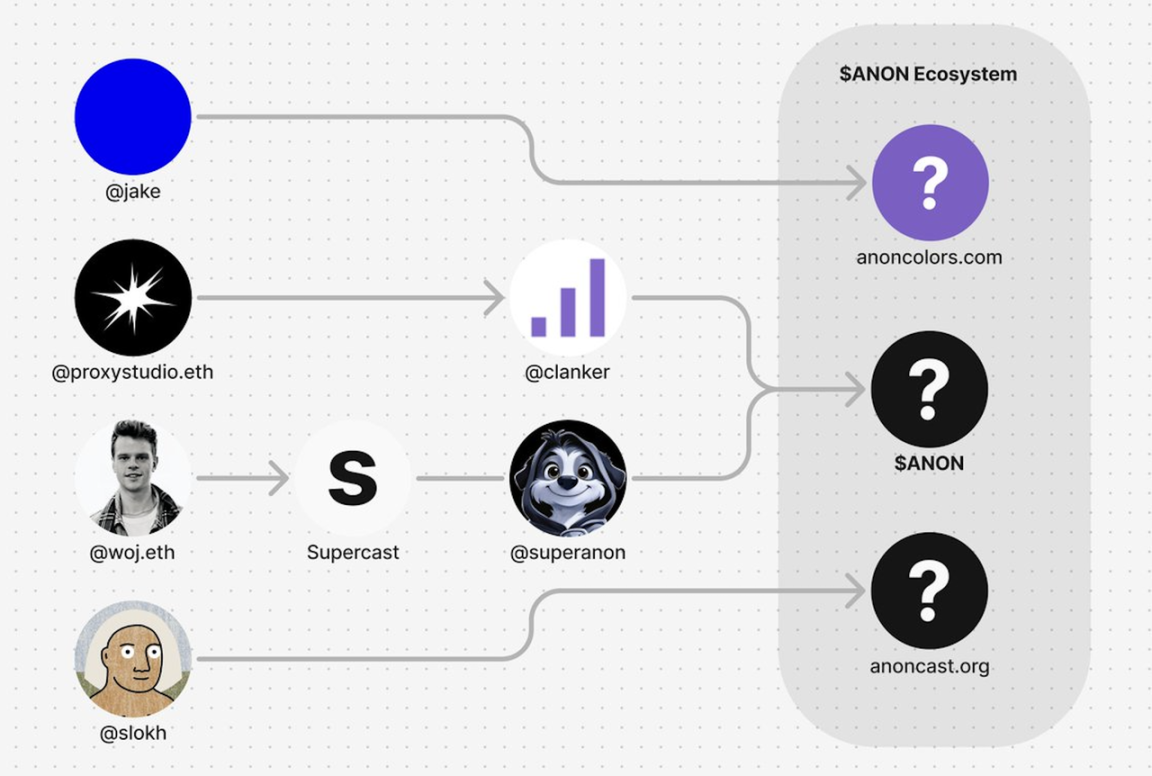 推特用户 @0x Luo 表示:「ANON 代币,是匿名用户在 Farcaster 第三方客户端 Supercast 中的匿名发帖账号 Superanon 中发帖通过 clanker 部署的,后来不少用户给 Supercast 创始人 woj 空投 $ANON,而 woj 又将获得的 $ANON 空投给 Supercast 用户,收获一波好评也提升了社区认可度。」
