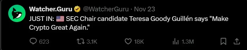 无论谁最终接任这个职位,有一点是明确的:特朗普已经明确表示,他要比上一届政府更积极地拥抱加密货币,说实话这个门槛并不算高。
