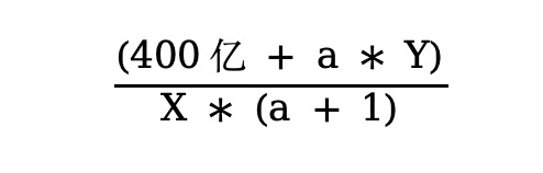举例来说明,假设当前 MSTR 持有的 BTC 为 400 亿美元,总流通股 X,其总市值为 Y。则此时每股权益为 400 亿 / X。以最不利的股权稀释来融资的话,假设增发新股比例为 a,这意味着总流通股变为 X*(a+1),以当前估值完成融资,共计筹得 a * Y 亿美元。而将这些资金全部转化为 BTC,则从 BTC 持仓变为 400 亿 + a * Y 亿,意味着每股权益变为:
