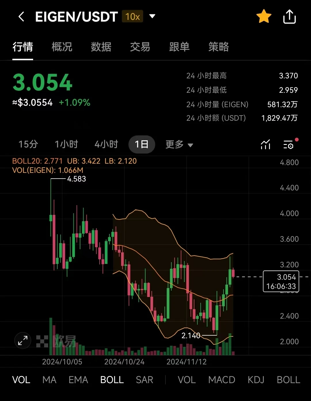 再质押板块方面,EigenLayer( EIGEN)继上周尴尬的创下历史新低后反弹态势相当强劲,在 BTC 大幅回调的情况下暂时守住了 3 枚美元的关键位置。 作为赛道龙头的基石级协议, EIGEN 的后续走势预计将较大影响 ether.fi(ETHFI)、Renzo(REZ)、Puffer(PUFFER)等生态项目的后市表现。