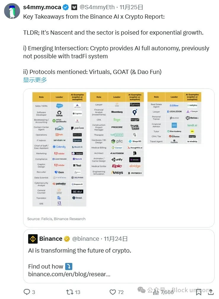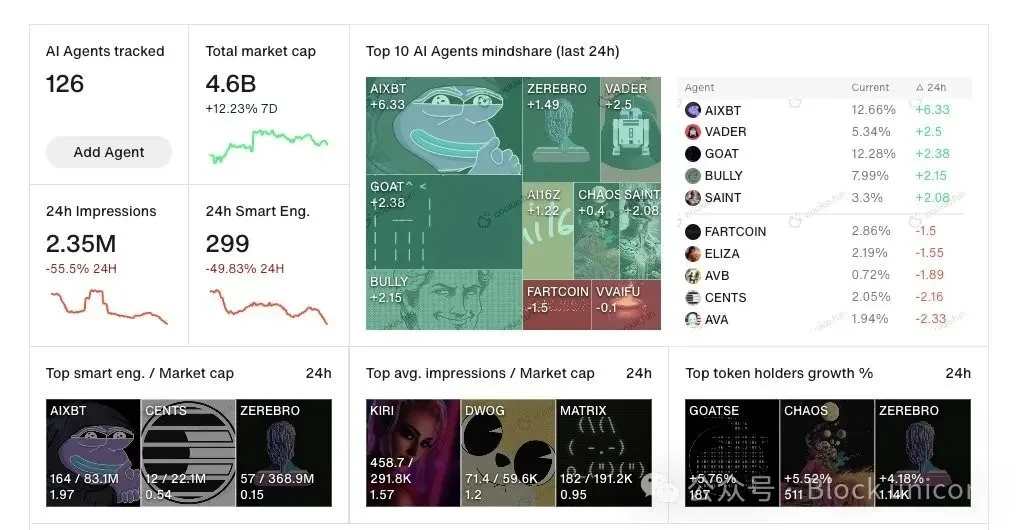 新的发展,例如 @cookiedotfun 的 AI 代理指数,允许用户追踪新兴市场的参与者。