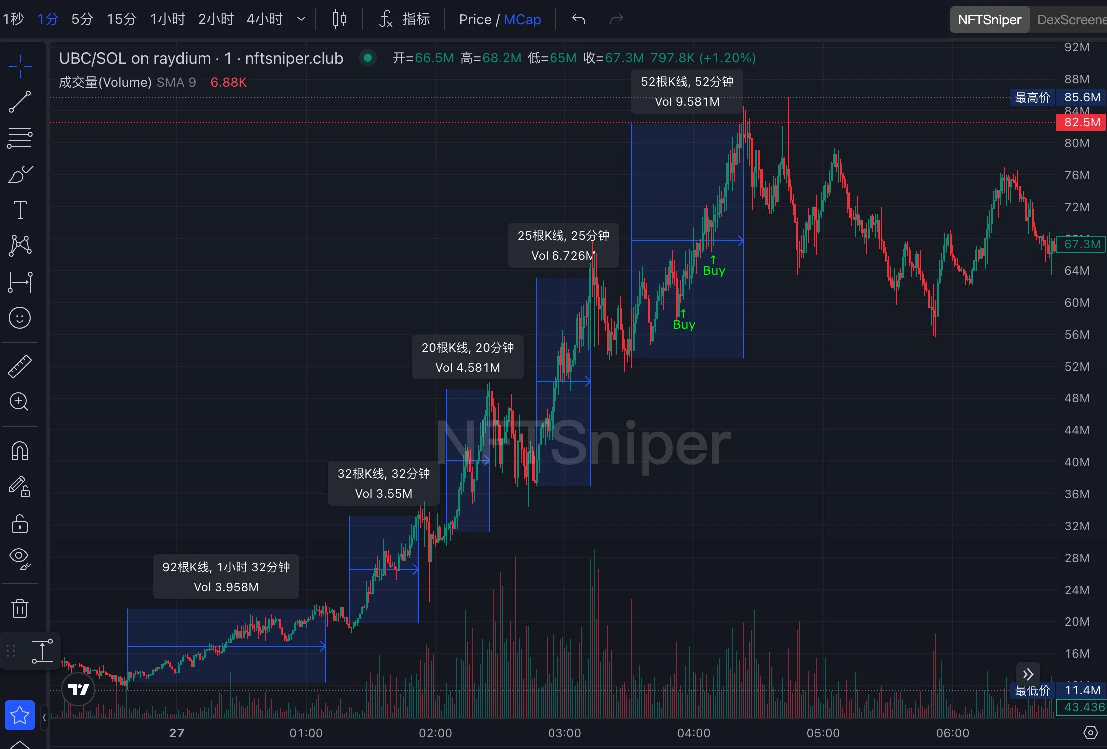 $ubc (9psiRdn9cXYVps4F1kFuoNjd2EtmqNJXrCPmRppJpump) 于 11-26 8: 07 发射,当天最高涨到 25 M,然后在晚上 23: 37 跌到 11.4 M 后开始上涨,最高涨到 113.1 M。一夜暴涨 9 倍的背后,是哪些因素导致的呢?