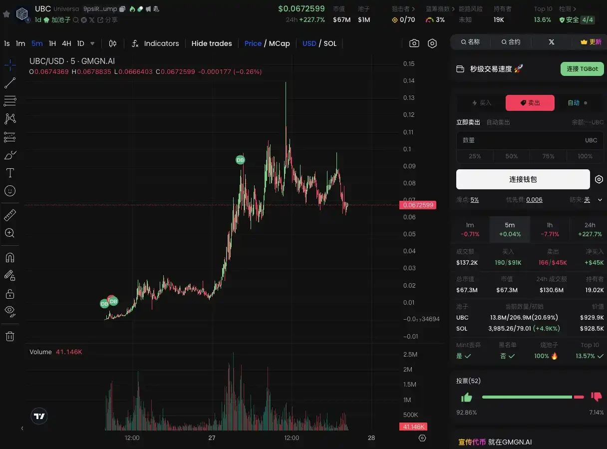上线短短两天,$UBC 已在去中心化交易平台 Pump.fun 上表现不俗,目前市值$ 66 M,成为近期讨论度最高的 AI 代币之一。作为一款融合了创新理念和实际应用的项目,$UBC 的热度持续攀升。