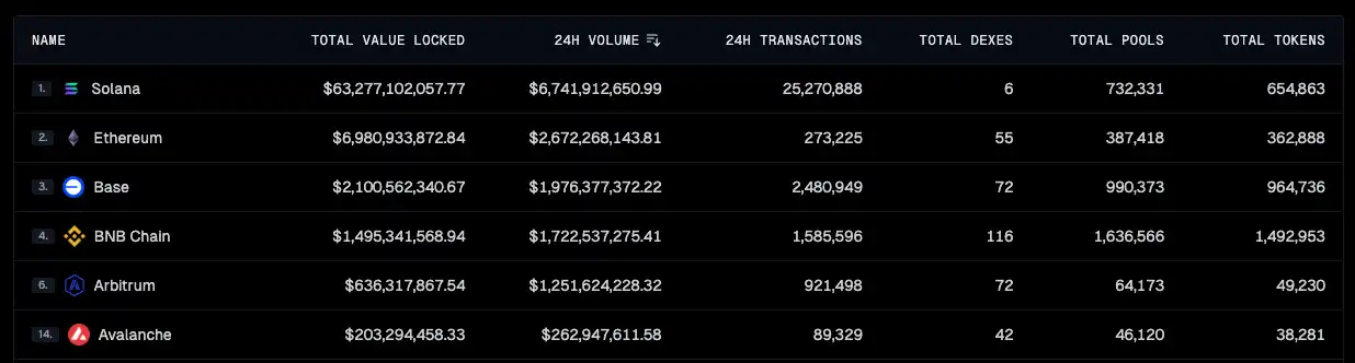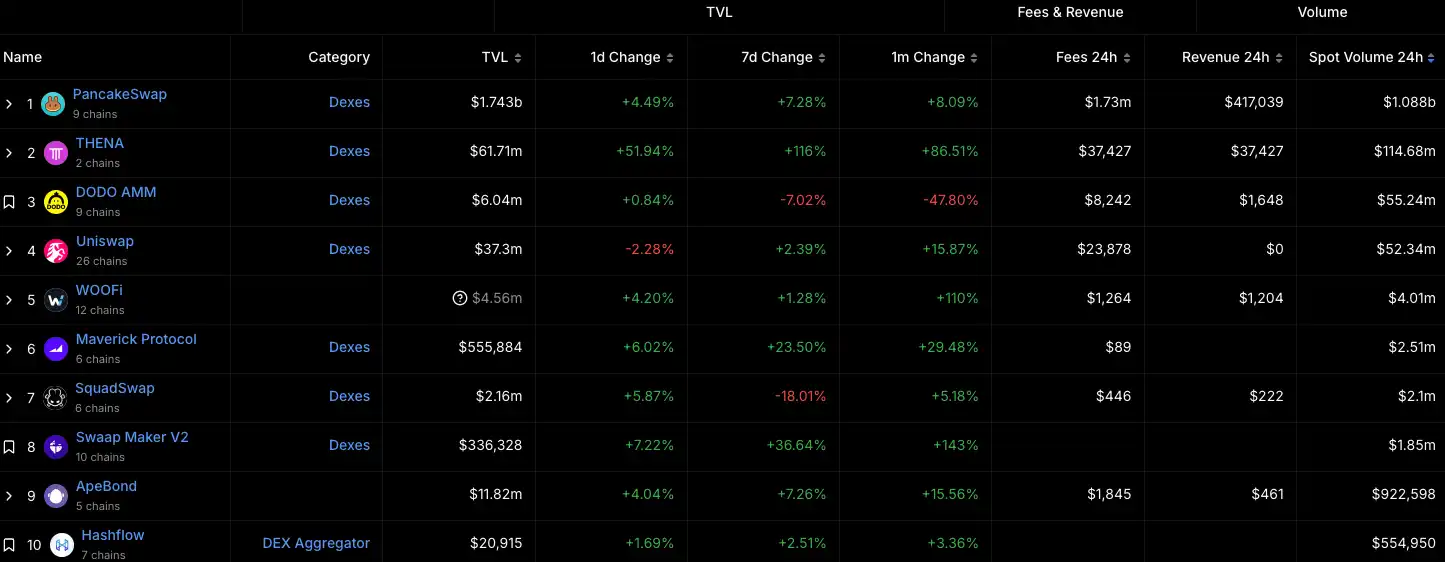 在 Binance 上市的第一天,$THE 的交易量超过 10 亿美元,并在交易量上超越 Dogecoin、Solana 和 XRP 等主流加密资产。目前 BNB Chain 上 DEXS 24 小时交易量仅次于 PancakeSwap,位居生态第二。