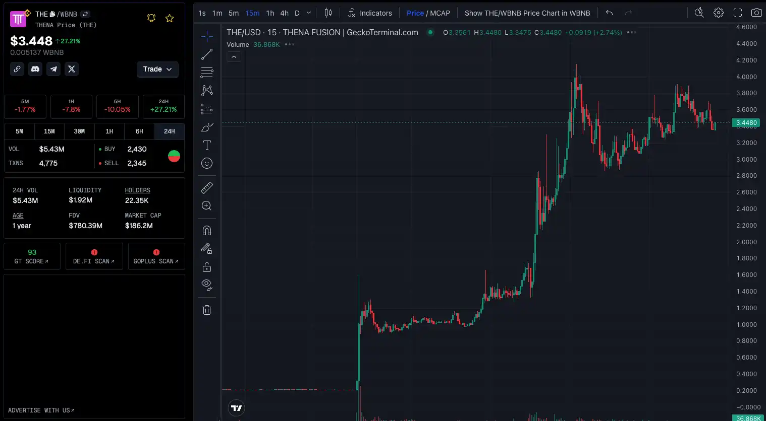 $THE 是 BNB Chain 上 DEX 平台 Thena 的原生代币,是 CZ 出狱后 Binance 上线的第一个项目。Thena 的发展不仅受到用户的支持,也得到过 Binance 创始人 CZ 的推文转发和认可。因此有社区怀疑这是 BN 内部做的产品,不过 Thena 团队确实是野生的欧洲团队。相关阅读:《 专访 THENA:ve( 3, 3) 模型先驱如何改变 BNBChain 的 DeFi 格局? 》