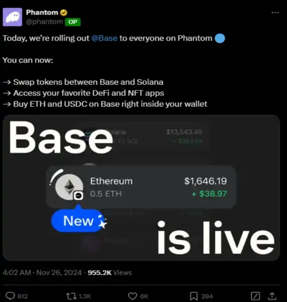但我认为,Base 正在迎来类似的趋势,或者已经非常接近。例如,就在今天,Phantom 宣布将支援 Base: