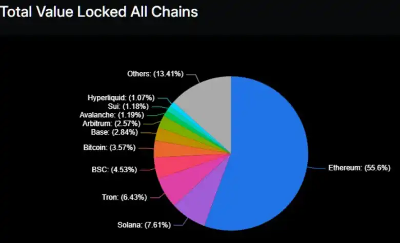 在 DeFi Llama 追踪的 328 条区块链中,以太坊依然占据了超过 50% 的总锁仓量(TVL)。真是条「死链」呢(笑)。