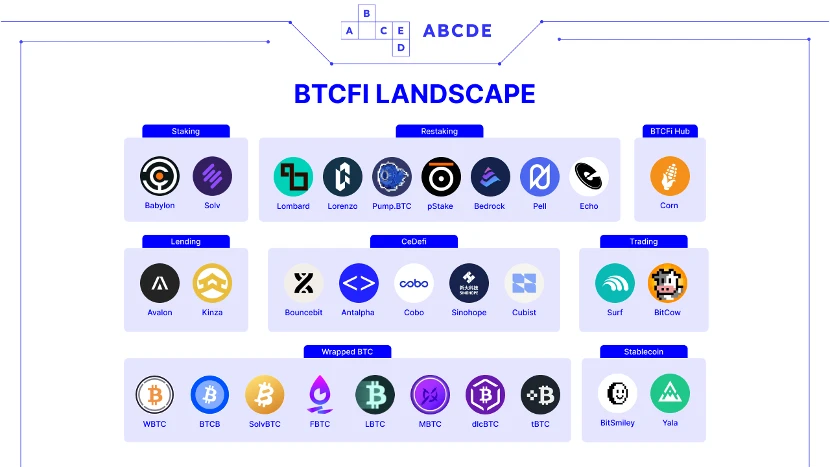 5、BTCFi 围绕比特币的两大方向展开,一、提升比特币的生息属性,代表项目有 Babylon、Solv、Echo、Lombard、Lorenzo、Corn 等;二、提升比特币的流动性,代表项目有 Wrapped BTC、Yala、Avalon 等;