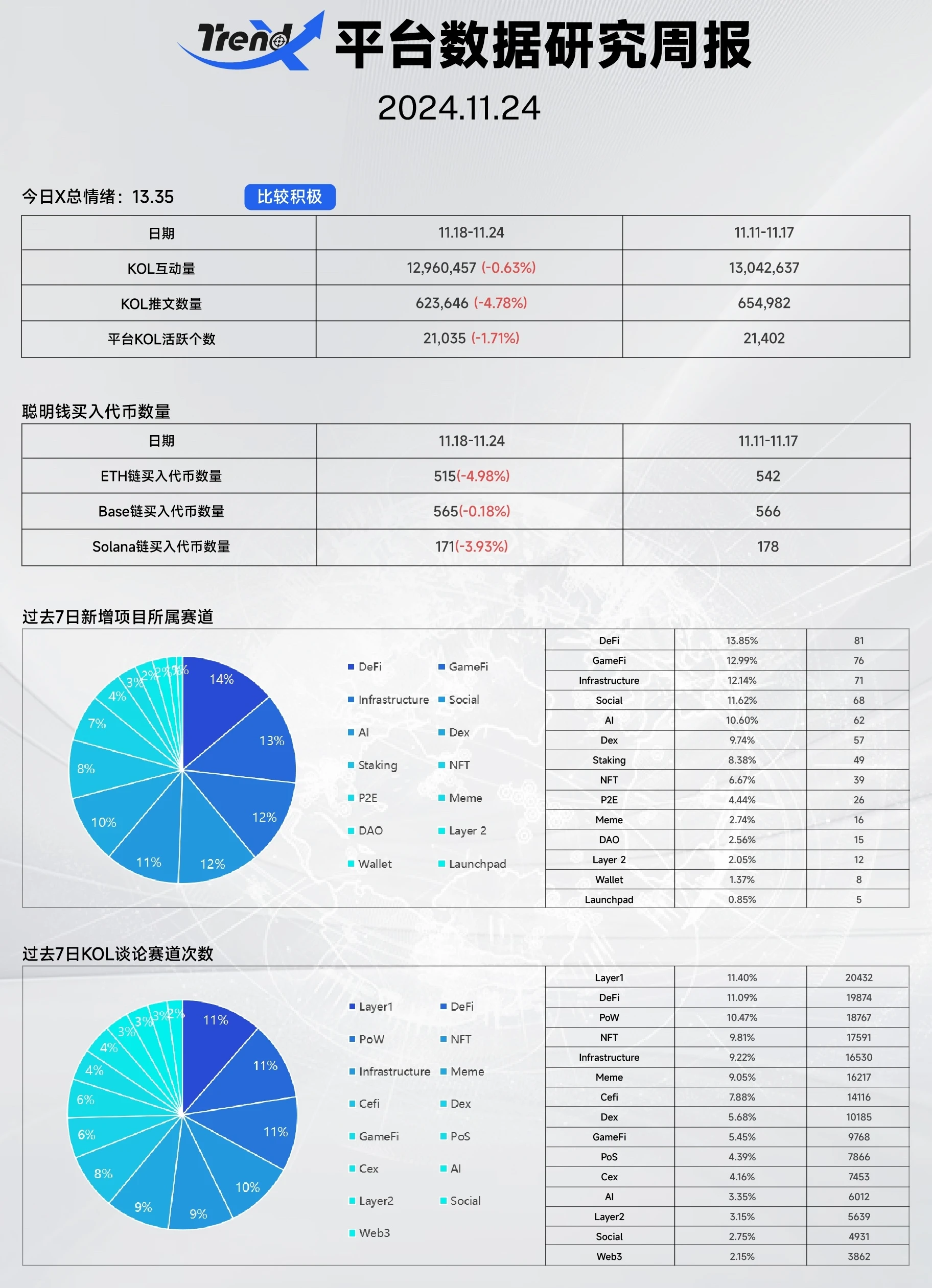 截至 11 月 24 日,TrendX 平台 BTC、ETH、TON 的数据统计如下: