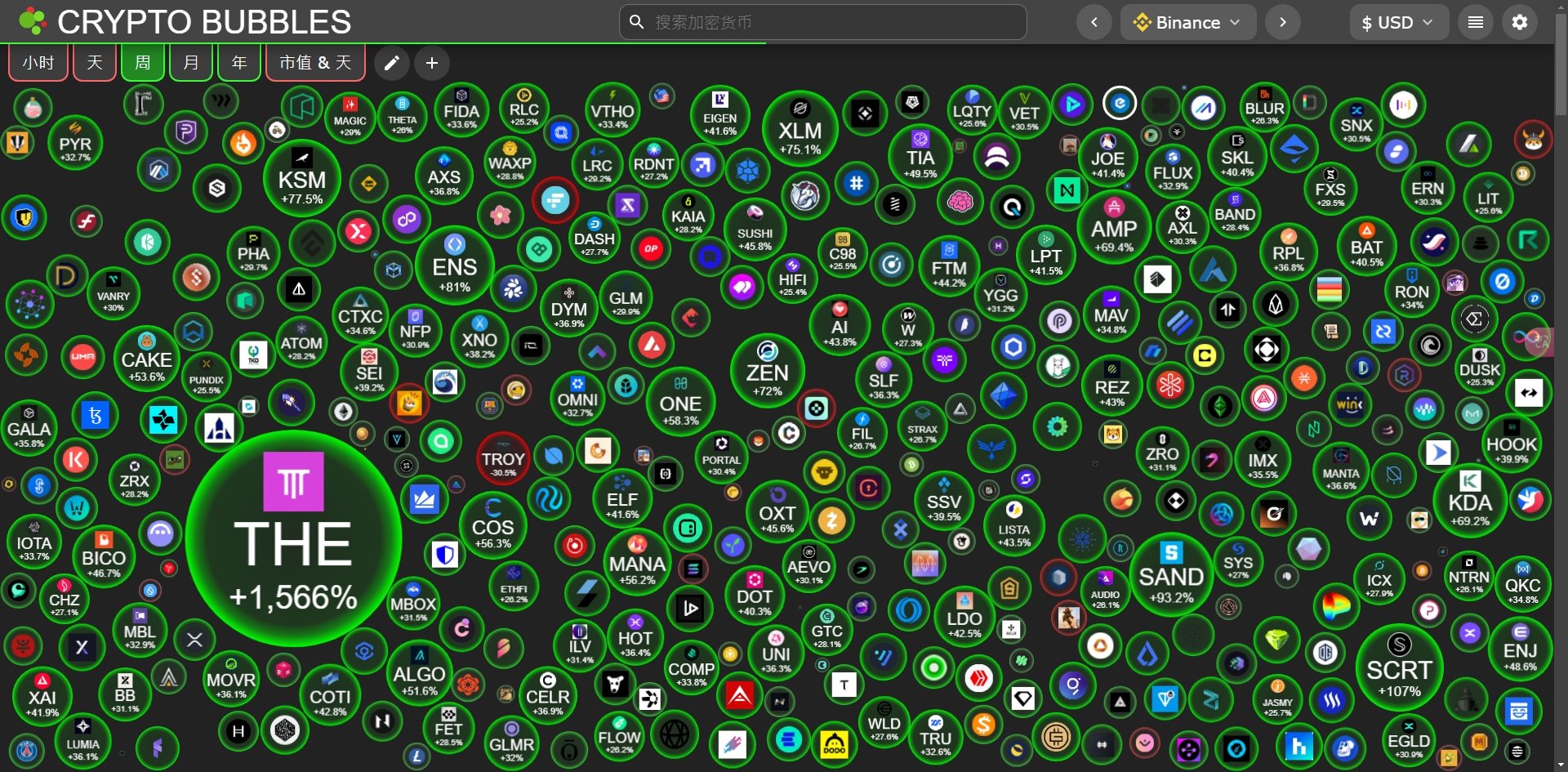 本周 加密市场 整体情绪偏多,Thena、Secret、The Sandbox 分别以 1,548%、108%、90.2% 的涨幅领跑,主流币普遍上涨。根据 Blockchaincenter 数据 显示 ,目前山寨币季节指数为 63(+30) ,山寨币热度回暖迹象。
