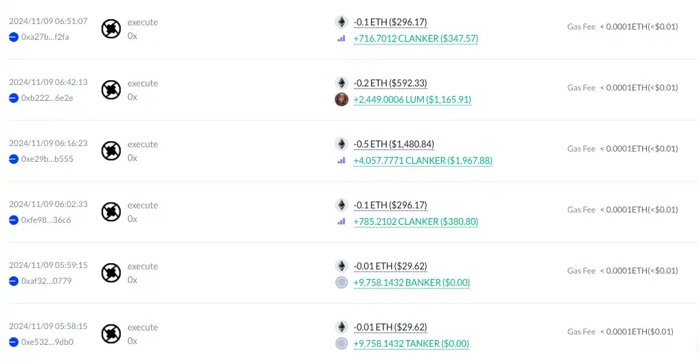 在随后的几小时内,mopzy.eth 继续买入 CLANKER,还买入了由 Clanker 和 Higher 两个 Agent 联合发的代币 LUM。