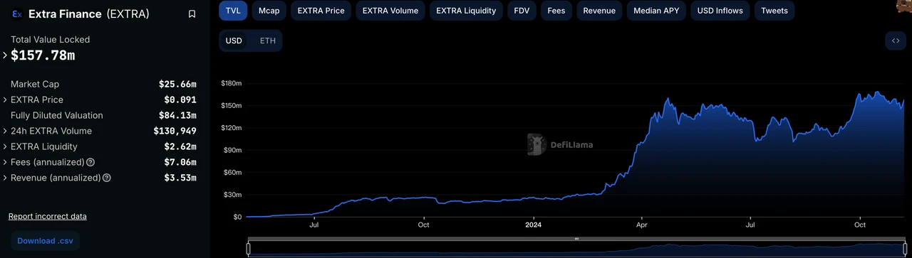 图-14 Extra Finance 的 TVL(数据来源:https://defillama.com/protocol/extra-finance#information)
