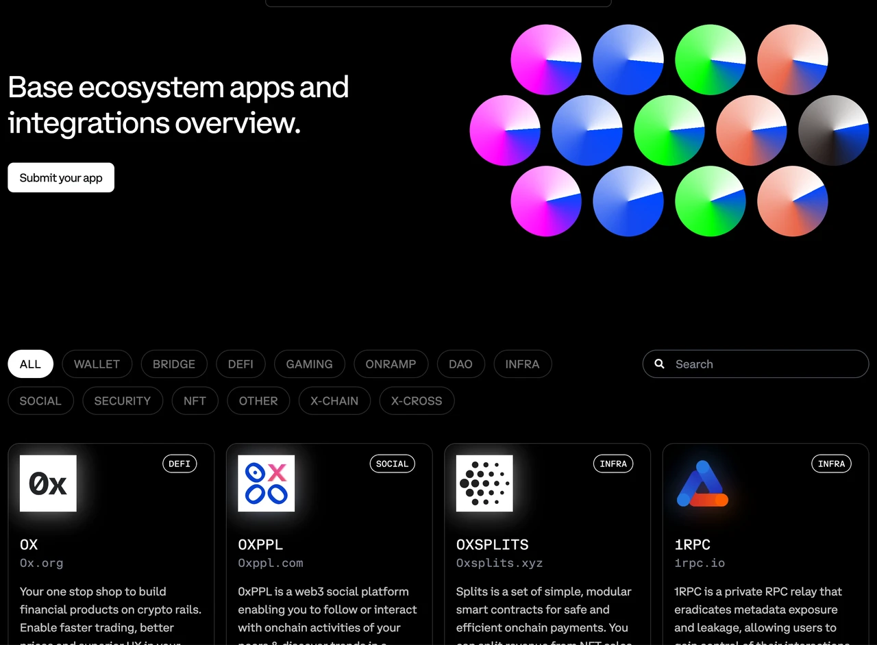 图-10 Base 链上的生态项目(数据来源:https://www.base.org/ecosystem?utm_source=dotorg&utm_medium=nav)