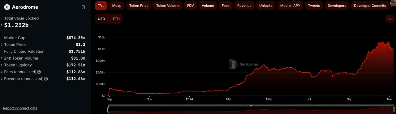 图-12 Aerodrome 的 TVL(数据来源:https://defillama.com/protocol/aerodrome#information)