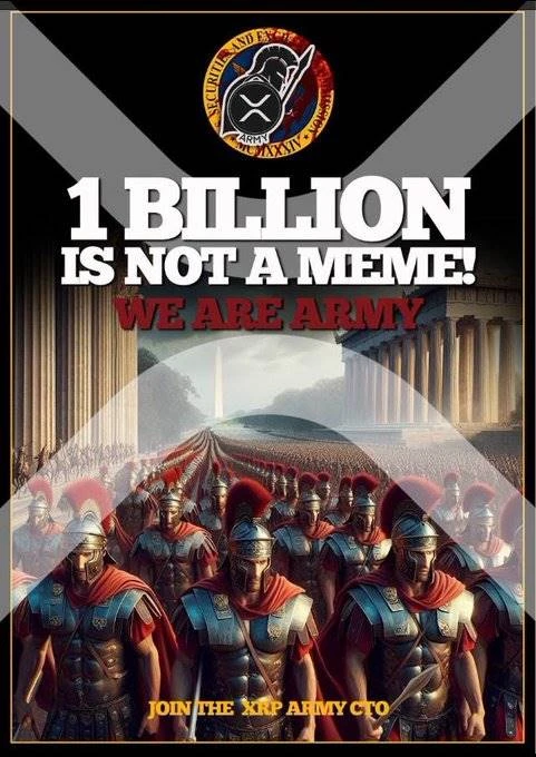 其对应的叙事也比较简单粗暴,即号召持有 XRP 的人们组成一支军队(ARMY),我们不是 Meme,我们是 Army;有点英文单词尾音双押的趣味和强烈的 CX 感。