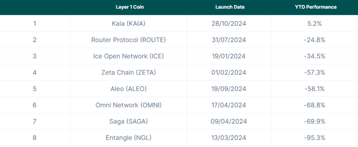 5、2024年发行的 Layer 1 Token表现如何?