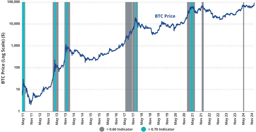 这一模式类似于 2020 年大选后,比特币价格在年底前翻倍,并在 2021 年进一步上涨了约 137%。随随著政府对比特币支援态度的重大转变,投资者的兴趣正在快速增加。近期,我们接到的投资谘询数量激增,许多投资人意识到自己在这资产类别的配置明显不足。侭管我们密切关注市场是否会出现过热迹象,但仍重申对本轮周期比特币价格目标 18 万美元 / BTC 的预测,因为追踪的关键指标显示出持续的看涨讯号。