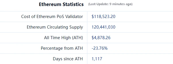 ETHUSD :目前 3, 703 美元,历史最高价 4, 878 美元