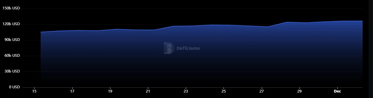 据 DeFiLlama 的数据,本周 DeFi 总 TVL 为 1, 262 亿美元,较上周涨幅为 1.39% 。