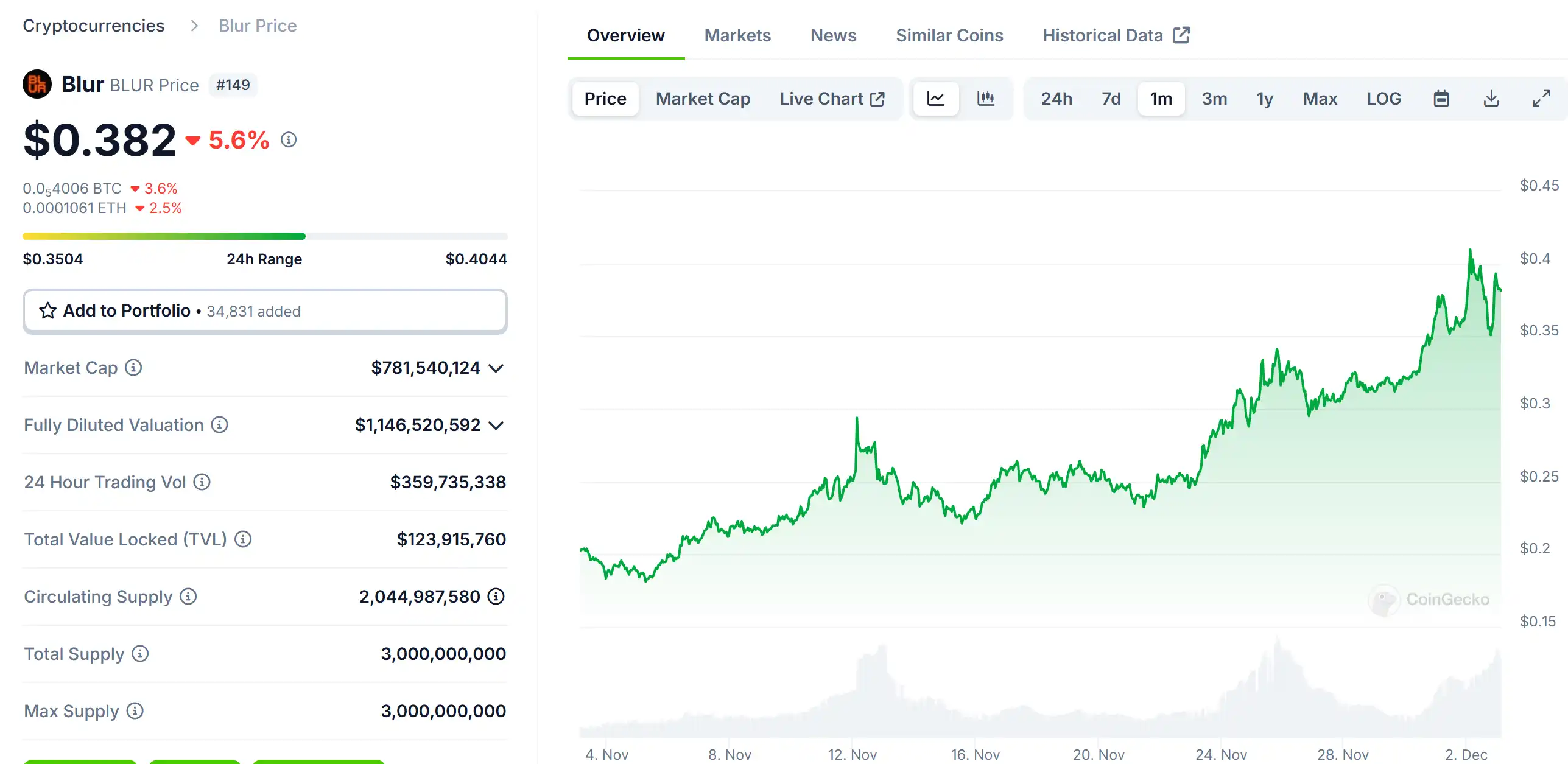 而与 NFT 基建最相关的 Token 之一 $BLUR,也在过去一个月悄然上涨了近 90%。在上个月底 Andrew Kang 喊单 $BLUR 之后,$BLUR 持续上涨,涨幅近 20%。