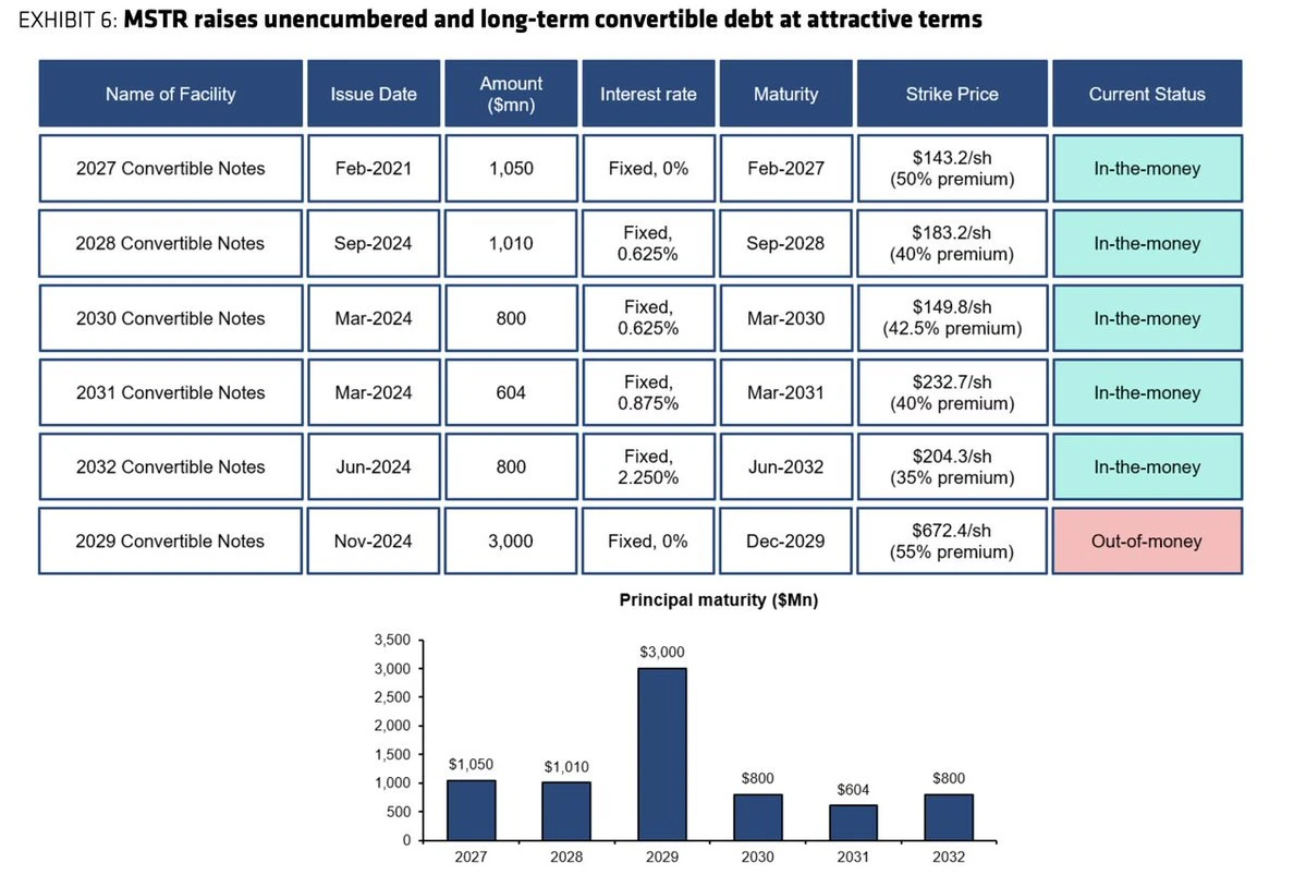MSTR 的 Convertible bonds 发可转债(下文通常 CB)”: 通过发售 CB 进行债权融资,CB 和普通的债券不太一样,既有股性、又有债性。 下文会详细探讨,我认为这也是 MSTR 的游戏核心。