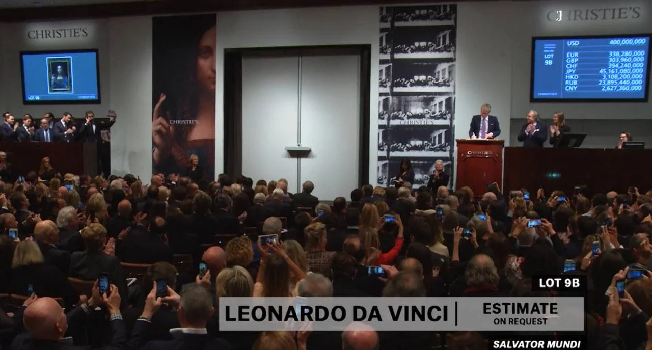 这幅达芬奇最后的杰作,描绘耶稣基督,右手祝福,左手持水晶球,象征"宇宙的主宰"。2017 年,它在佳士得以 4.5 亿美元成交,创造艺术品拍卖历史新高。然而,就在拍卖锤落下的瞬间,画作仿佛人间蒸发。