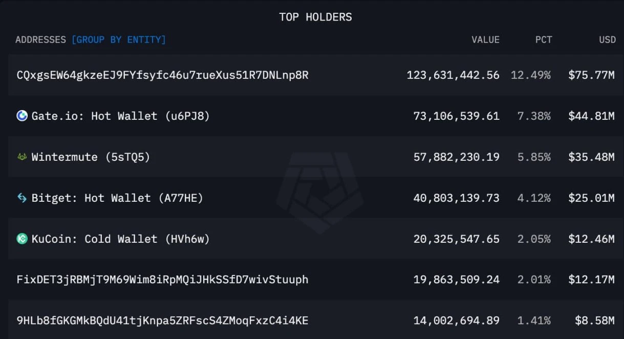 特别值得关注的是,Arkham 数据 显示,做市商 Wintermute 持有的 MOODENG 价值高达 3591 万美元,这是其持有价值最高的 Meme 币。在 MOODENG 的持仓地址中,Wintermute 按持有量排名第三。