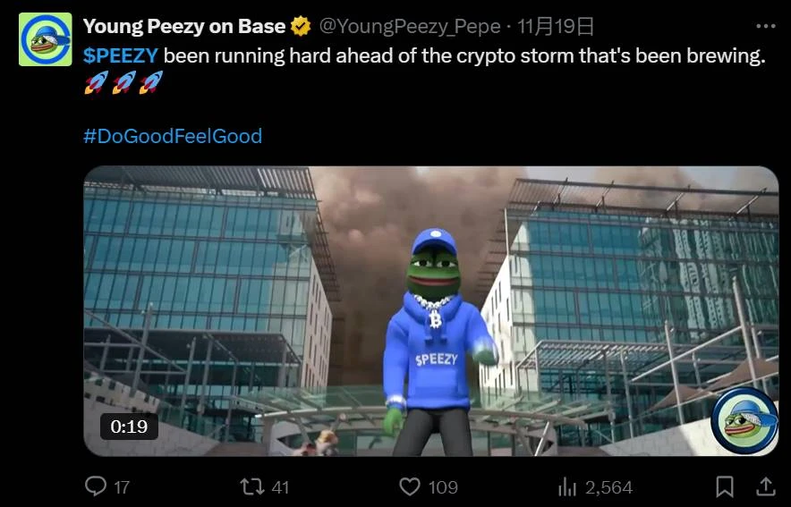 Young Peezy 形象同样来自 Matt Furie 的流行漫画,是 Pepe 的另一个化身。PEEZY 作为一个创新的 Web3 项目,旨在通过整合游戏、NFT 和社区互动来革新模因币市场,其功能包括 Pepe Verse 游戏和新项目的 Launchpad。其社交媒体发布多个高质量短视频,潜力较大,目前的市值应该被低估。