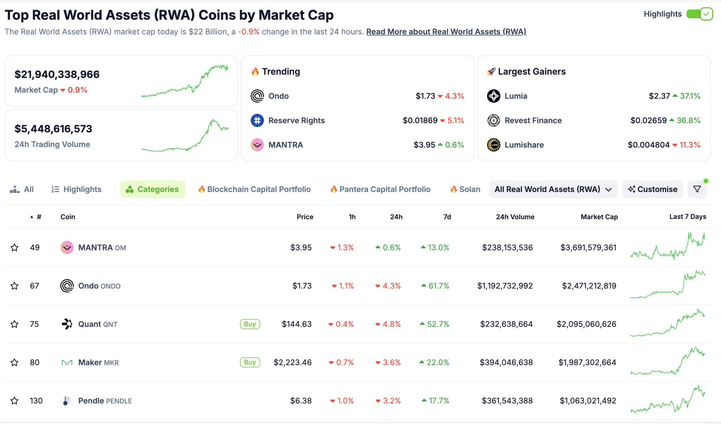 尽管 TVL 和产品 USDY 采用的数据并不亮眼,但 ONDO 已经「以涨服人」坐稳了自己 RWA 龙头地位。百亿级别的 FDV 周涨超 60% 。