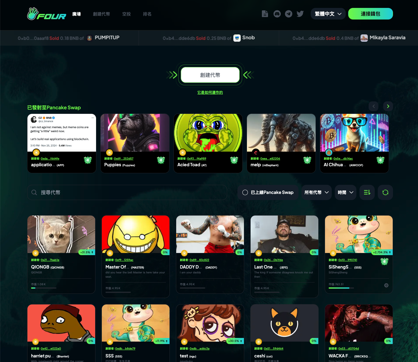 在 BNB Chain 上给大家介绍的是 Four.meme,Four.meme 不仅是 BNB 链上领先的 Meme 币发行平台,也是一个致力于推动加密货币创新与社区建设的动力引擎。