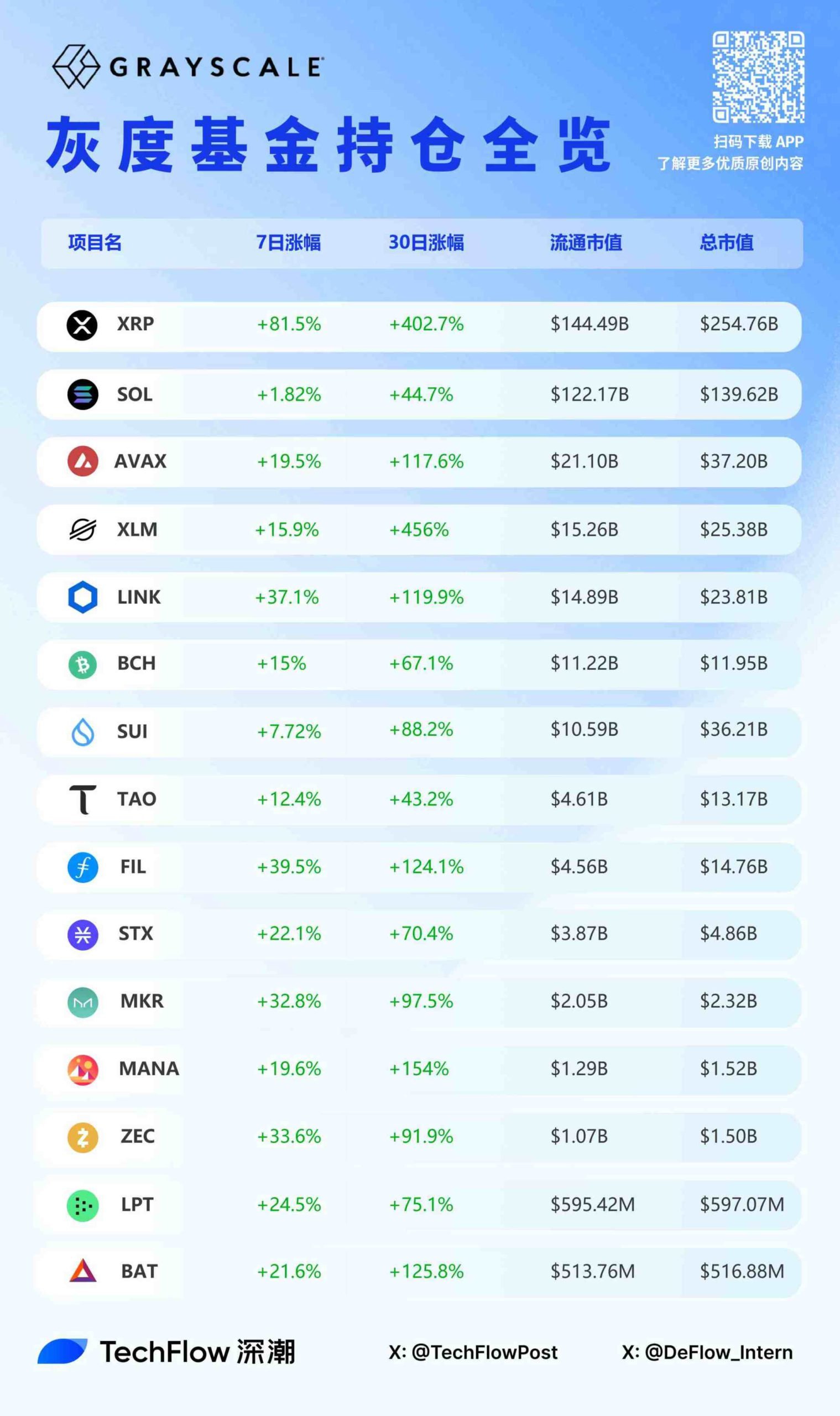 根据深潮 TechFlow 的统计,过去 30 天,灰度信讬持仓的资产,以流通市值加权计算的平均涨幅达到了 218.27%。