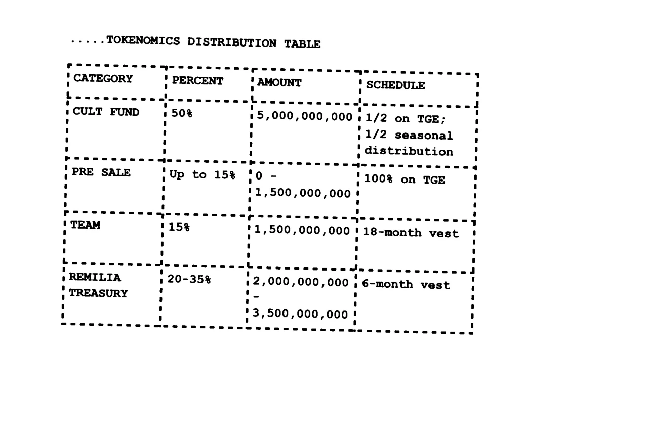 Remilia 国库分配占比达 20% ~ 35% ,解锁期期为 6 个月。