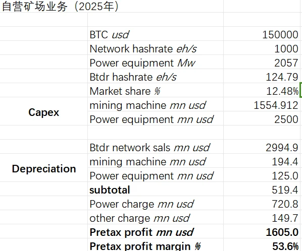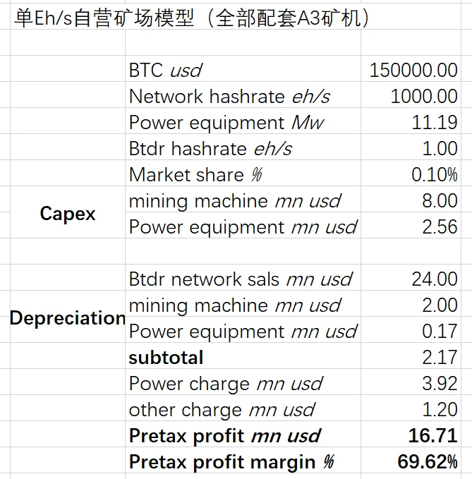 鉴于上述经营数字,比特小路 1 EH/s 模型如下: