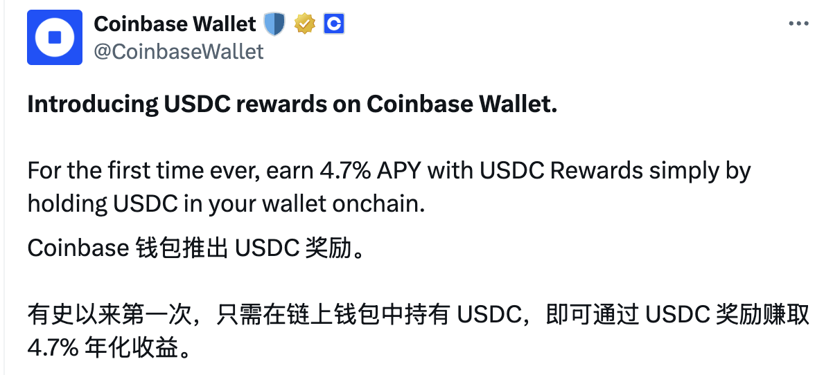 只需在「链上」钱包持有 USDC 即可获得收益。