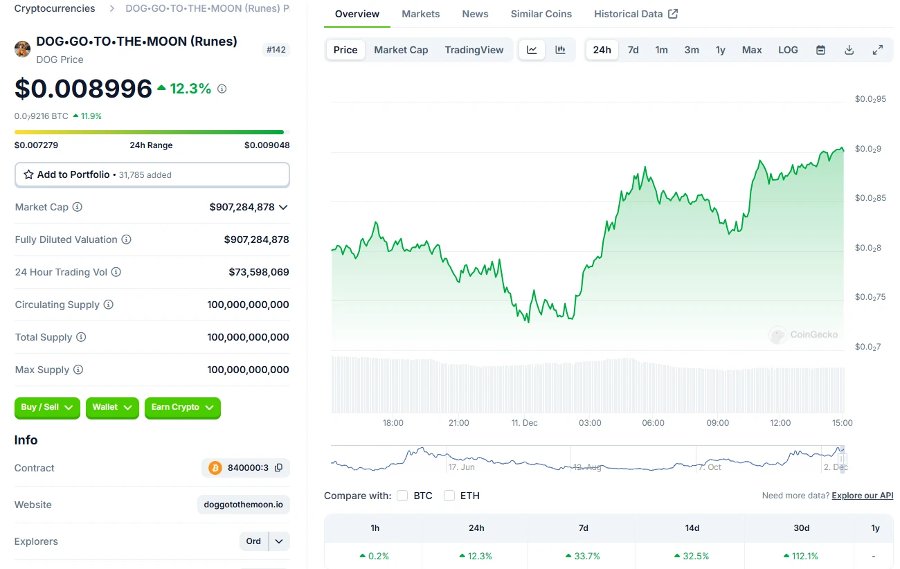 据链上数据 ,DOG 市值目前市值为 9.07 亿美元。